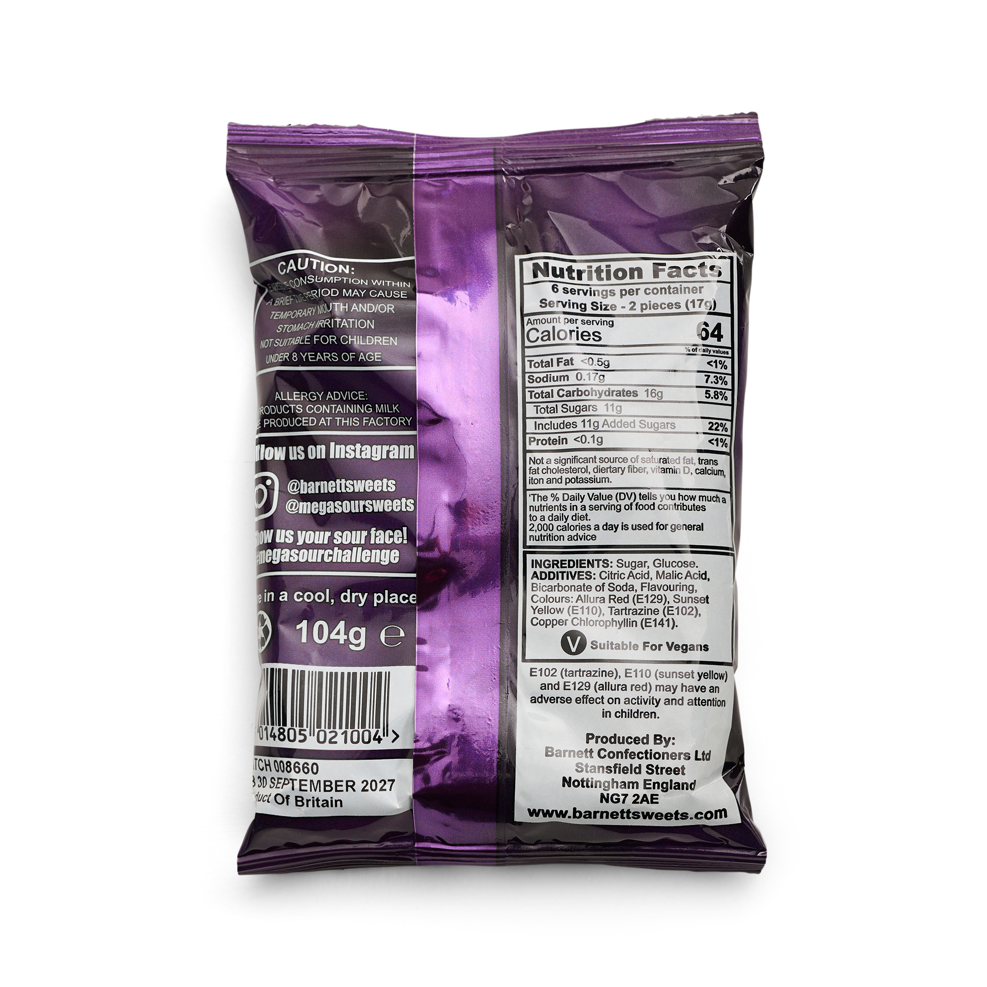 Indulge in the ultimate sour candy experience with Barnetts Mega Sour Fruits. These bite-sized fruit-flavored candies are crafted with care, featuring a delightfully tart and tangy taste that will tantalize your taste buds. Made with sugar and glucose, these shelf-stable treats are perfect for any occasion, from birthdays and holidays to everyday snacking. Packaged in a convenient 13-piece multipack, Barnetts Mega Sour Fruits are suitable for vegans and produced in a facility that also handles milk products.